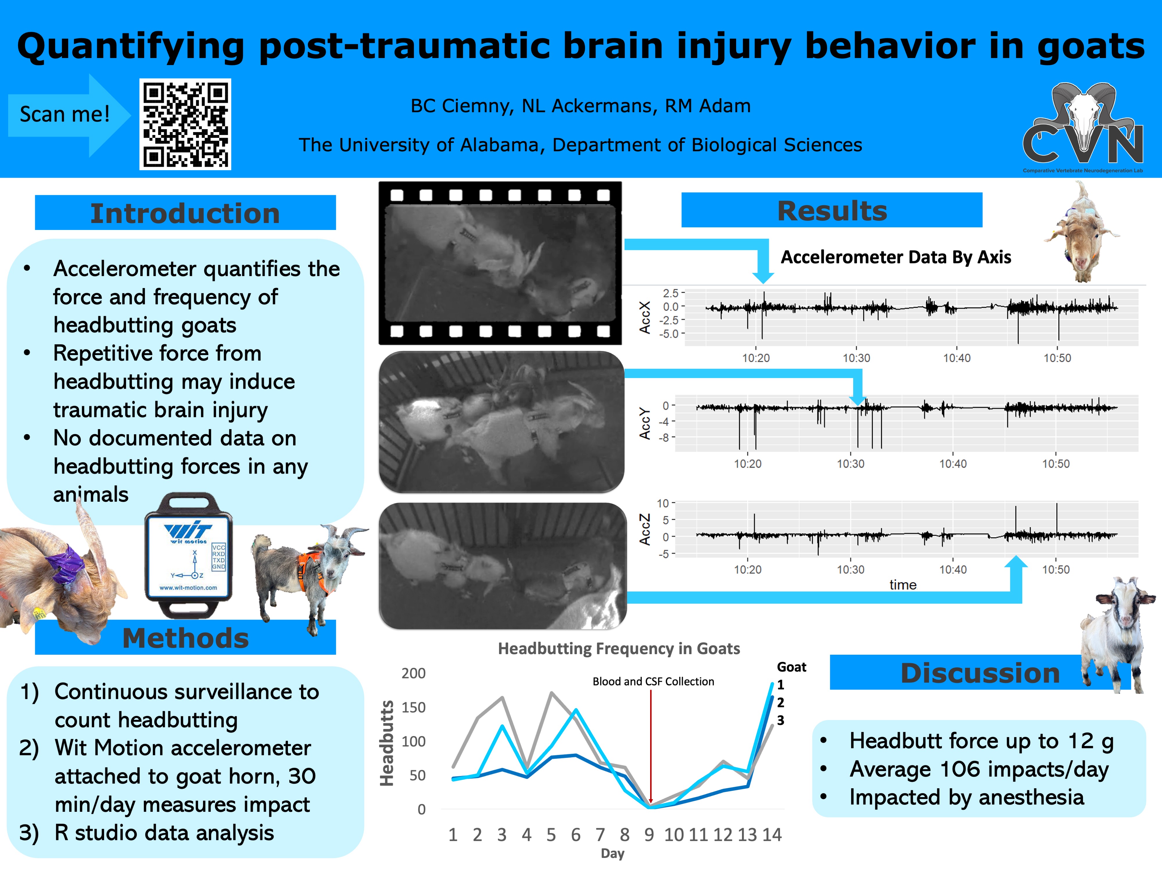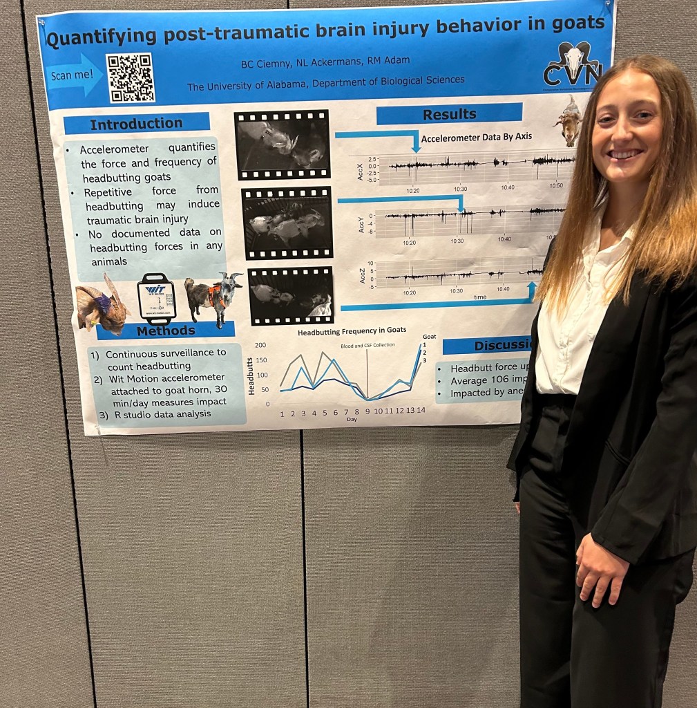CVN undergrads Bre Cemny and Abi Yarbrough both presented their posters on our goat pilot experiment at this year’s URCA (Undergraduate Research and Creative Activity) conference on campus at the University of Alabama. I think they both did a wonderful job. Congrats to them both!