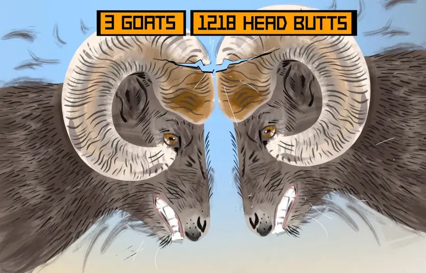 New Scientist – Three goats headbutt each other 1218 times in 12 hours